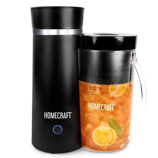 An electric iced tea maker with a glass pitcher brings convenience and style to brewing your favorite iced tea.